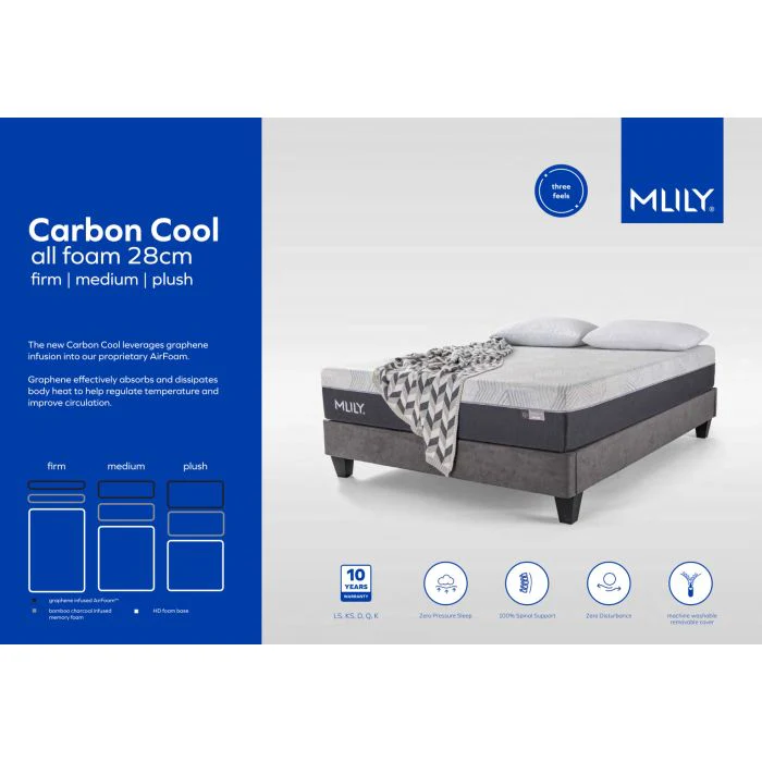 Discover the Mlily Carbon Cool Foam Mattress 28cm. Cooling memory and foam support deliver breathable comfort, pressure relief, and restful sleep.