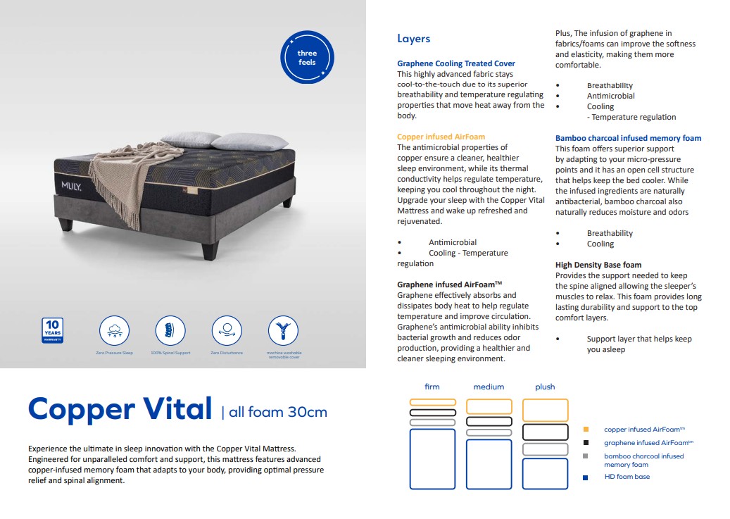 Upgrade your sleep with the Copper Vital Mattress and wake up refreshed, rejuvenated, and ready to seize the day.