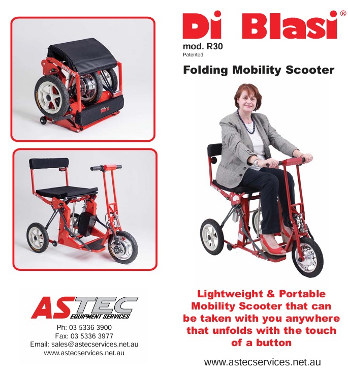The uniqueness of the Di Blasi from other portable scooters is that it folds and unfolds at the push of a button.